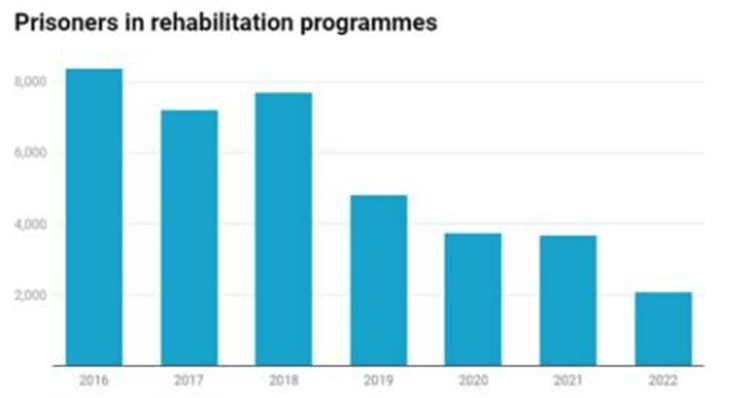 In other words, between 2017 and 2023, the number of offenders attending rehabilitation has halved while the cost per offender has more than trebled.